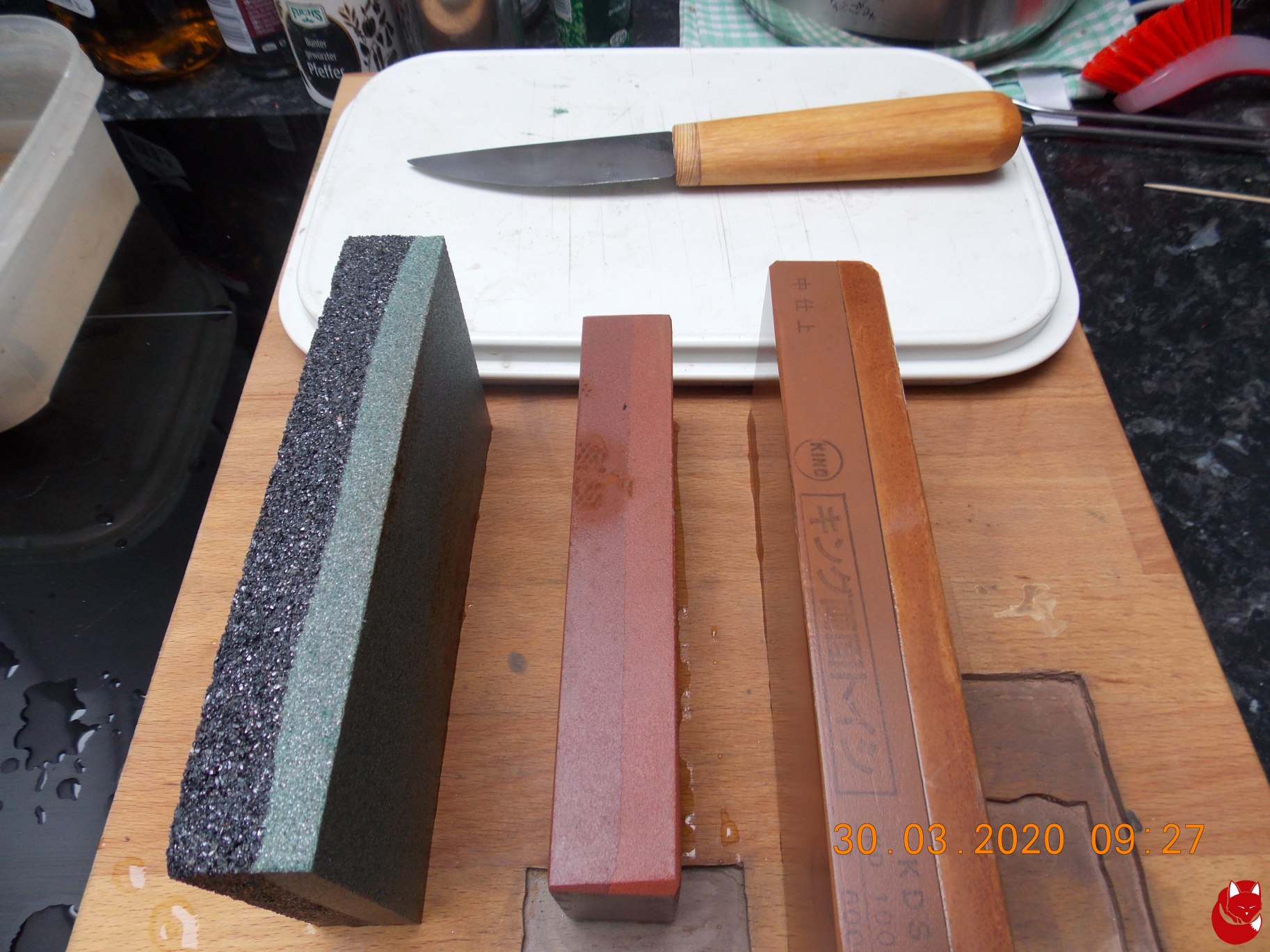 Auch für diese Klingen werden zunächst relativ grobe Steine (bei mir ~300 JIS) verwendet.