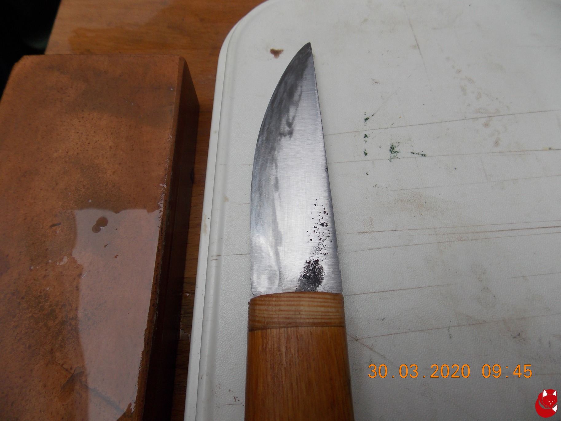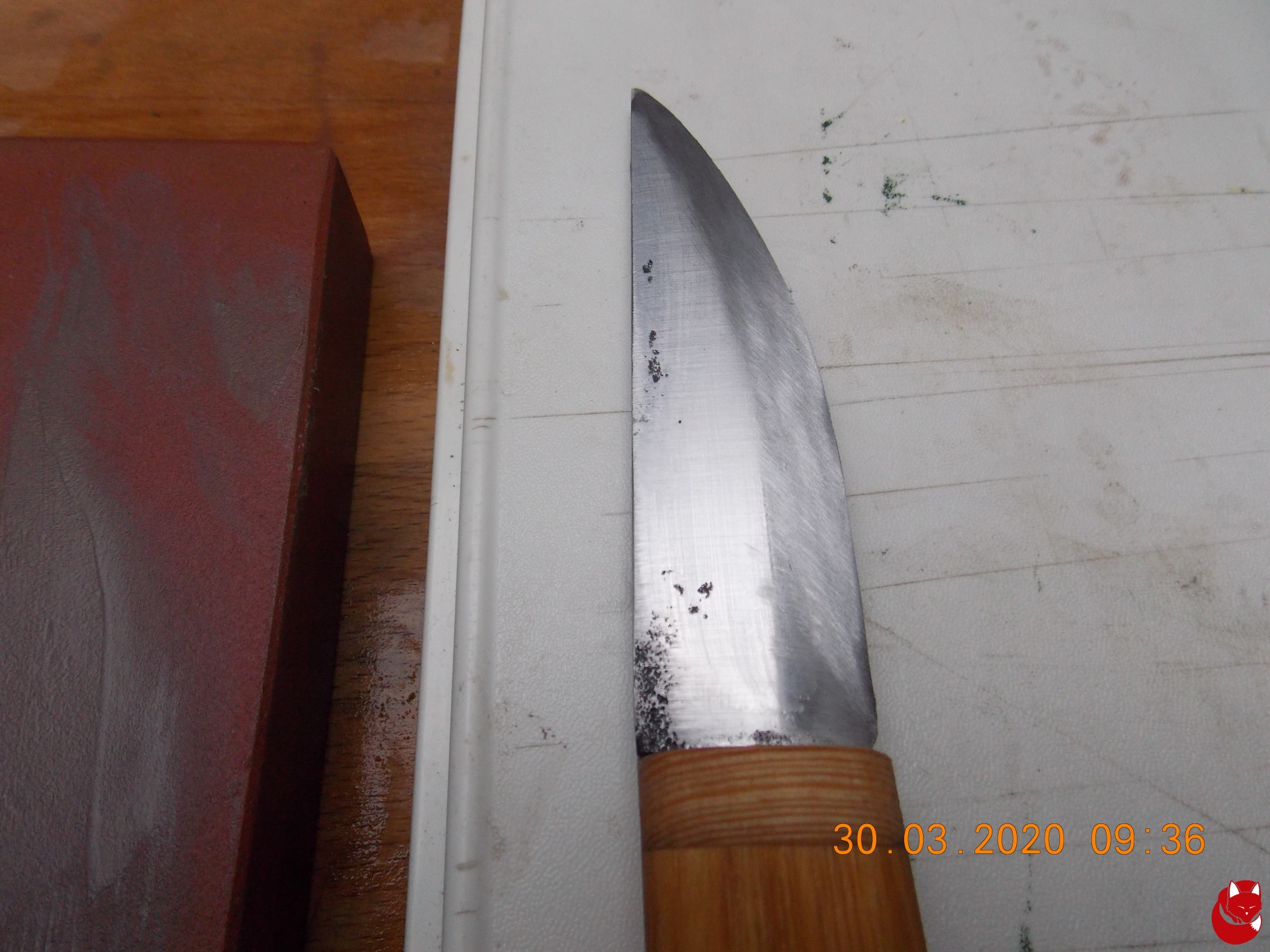 Ich entferne diesen Grat meist mit einem dünnen, sauberen Stöckchen, das ich mit wenig Druck der Länge nach über die Klinge führe, als würde ich es zerschneiden wollen.